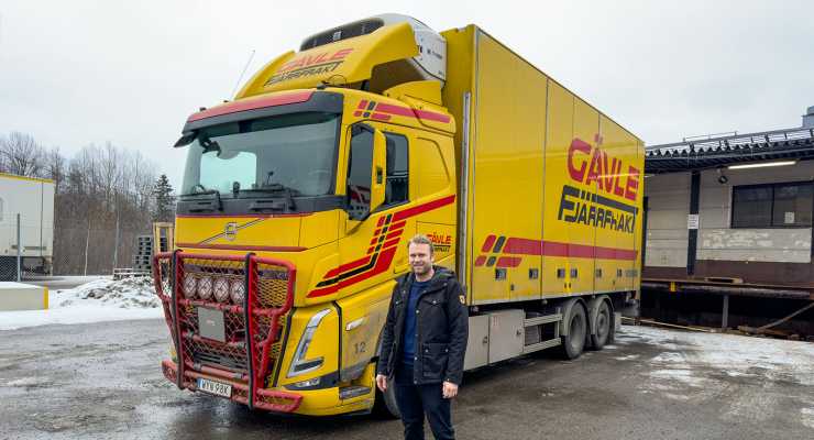 Den senaste av Gävle Fjärrfrakts lastbilar har just påbörjat sin resa. Joakim Tuvér förväntar sig att den ska rulla ytterligare 130 000 mil innan den pensioneras.