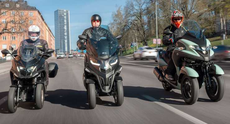 Köra motorcykel med vanligt B-körkort – får man det? Ja, om du fyllt 21 år och motorcykeln har tre hjul! Vi testar tre skotrar.