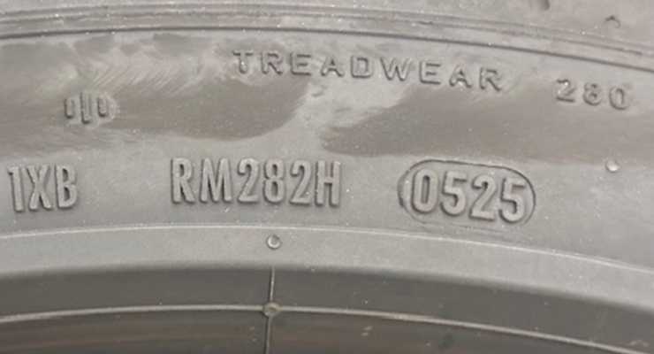 Du kan alltid kontrollera när ett däck är tillverkat genom att leta rätt på den så kallade DOT-koden som finns på däckets yttersida. Den visar att däcket uppfyller amerikanska krav och består av fyra siffror. De två första anger vecka och de två följande årtal för när däcket i fråga tillverkades. 0525 betyder alltså vecka 5, år 2025.