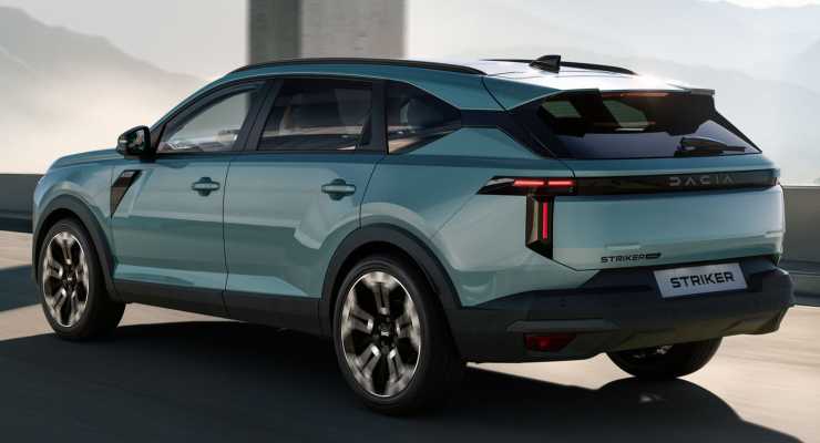 Alla detaljer om Dacia Striker inklusive tekniska specifikationer och interiörbilder släpps i juni men klart är att modellen kommer som bensinhybrid med antingen fram- eller fyrhjulsdrift.