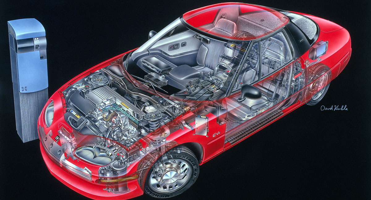Tvärt emot vad många kanske tror var General Motors en pionjär när det gäller elbilar. Den udda modellen EV1 från 1996 och var världens första serietillverkade elbil som utvecklats specifikt för eldrift.