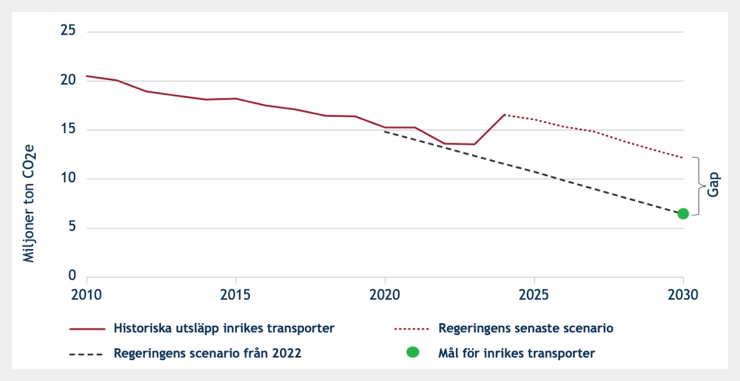 Andelen fossilfria drivmedel måste öka efter valet för att Sverige ska kunna klara målen, enligt rapporten. Om inga andra insatser görs än att höja reduktionsplikten skulle drivmedelspriserna behöva öka med upp till sex kronor litern om transportmålet ska nås.