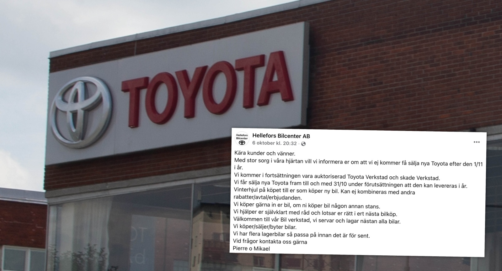 Det är en epok som går i graven när Hellefors Bilcenter efter 46 år inte längre får sälja nya Toyotabilar. Beskedet kom tidigare i oktober, skriver Nerikes Allehanda.