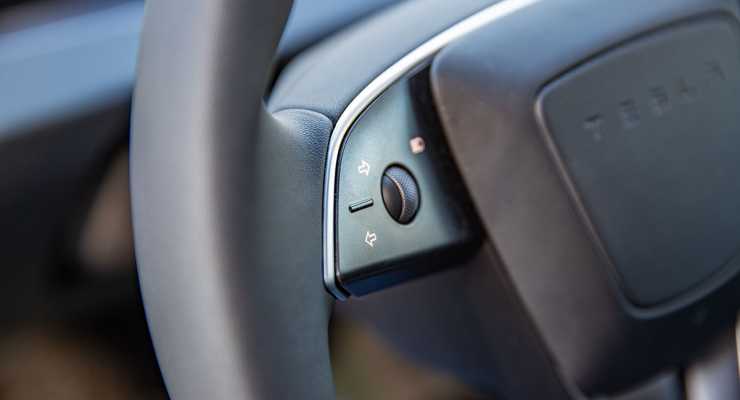 När Tesla lanserade den uppdaterade versionen av Model 3 togs den klassiska blinkersspaken bort. I stället fick förarna styra blinkers och andra funktioner med knappar i ratten.