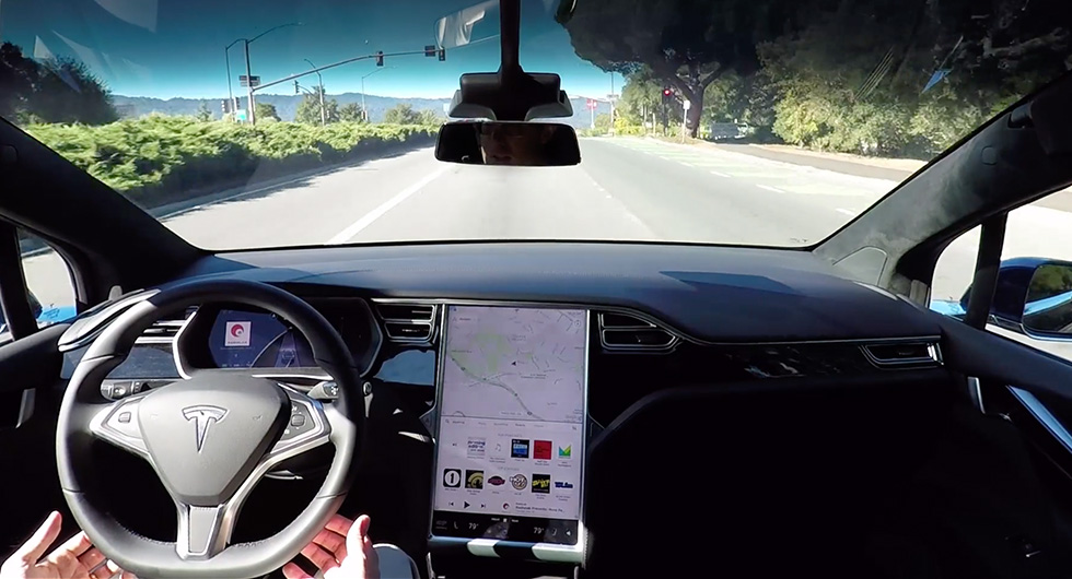 År 2016 publicerade Tesla ett filmklipp som påstods visa hur en bil körde helt autonomt mellan två adresser i Kalifornien. Videon visar hur en Tesla Model X navigerar trafik och trånga gator, stannar vid trafikljus och slutligen parkerar sig själv utanför Teslas dåvarande huvudkontor i Palo Alto.