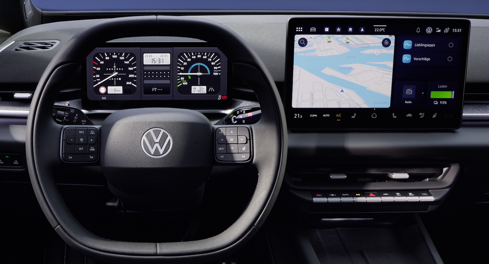 På insidan är ändringarna mycket större. Volkswagen har gjort en helomvändning efter all kritik mot de pekkänsliga reglagen. Ratten har numera fysiska knappar, en rad med ”vippreglage” har tillkommit under pekskärmen och Volkswagen kostar till och med på sig en fysisk volymratt på mittkonsolen med möjlighet att stänga av ljudet eller byta låt.