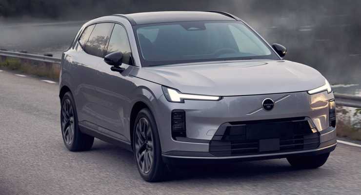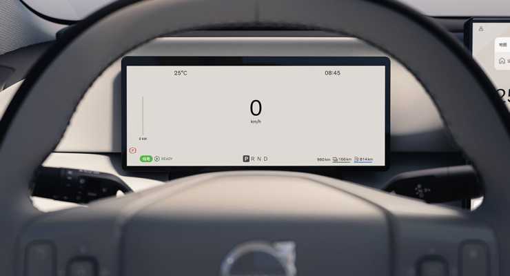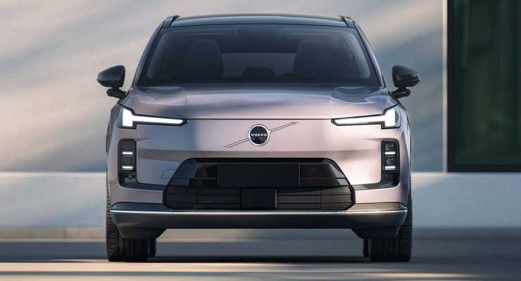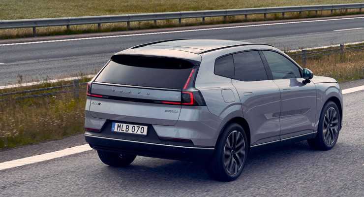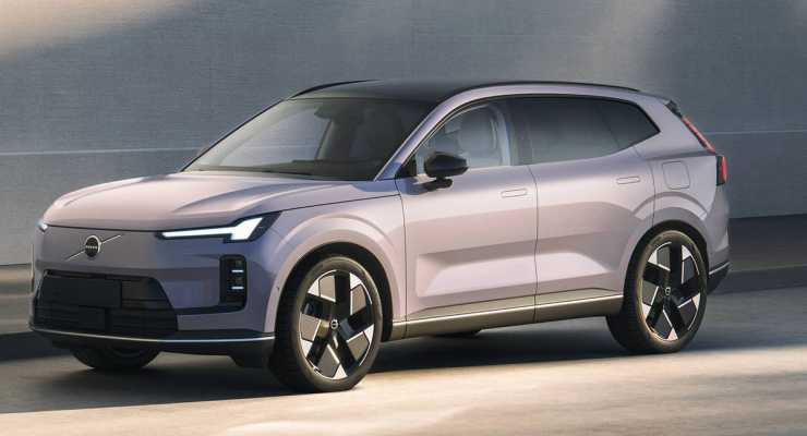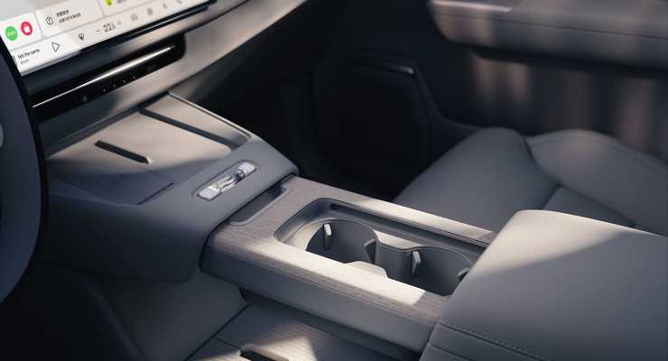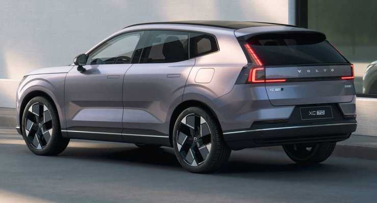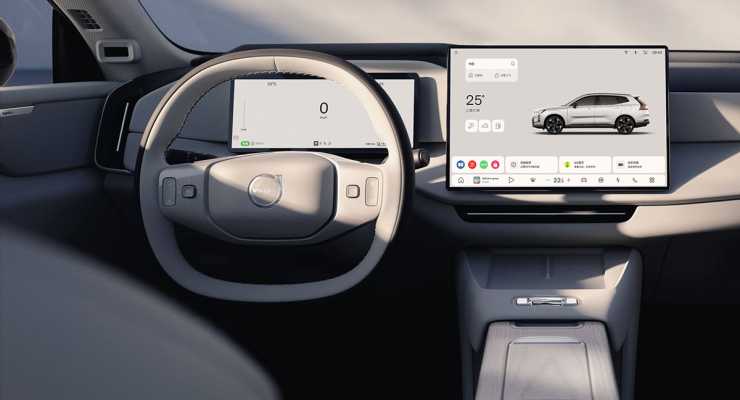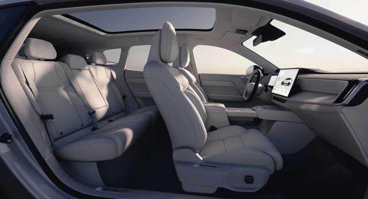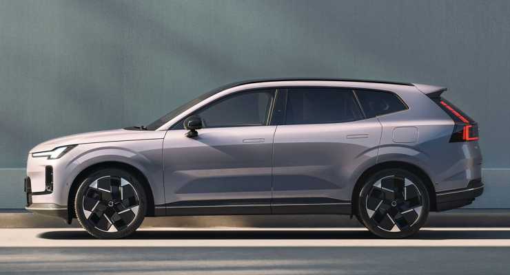 Den digitala skärmen framför ratten ser dessutom ut att vara något större än i EX90. På utsidan noteras infällda dörrhandtag.