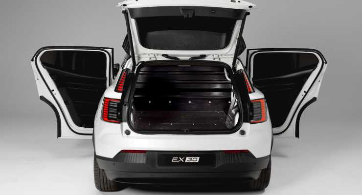 Bakdörrarna finns dock kvar, men med tonade rutor, och de kan öppnas i en större vinkel än i vanliga EX30.