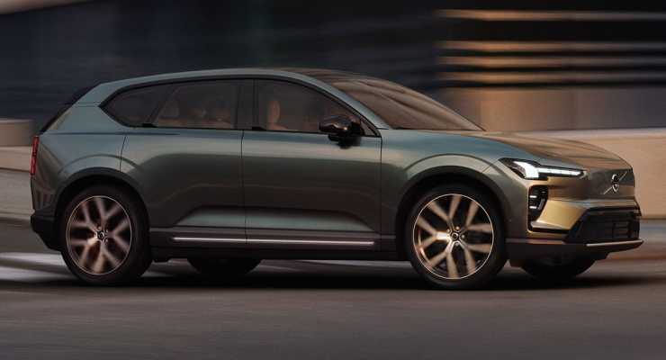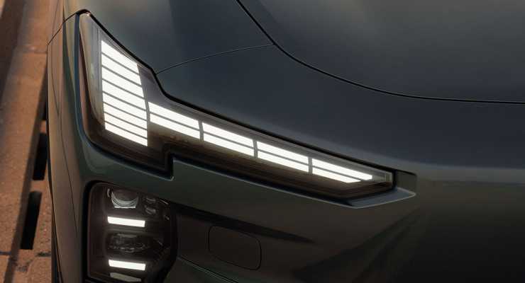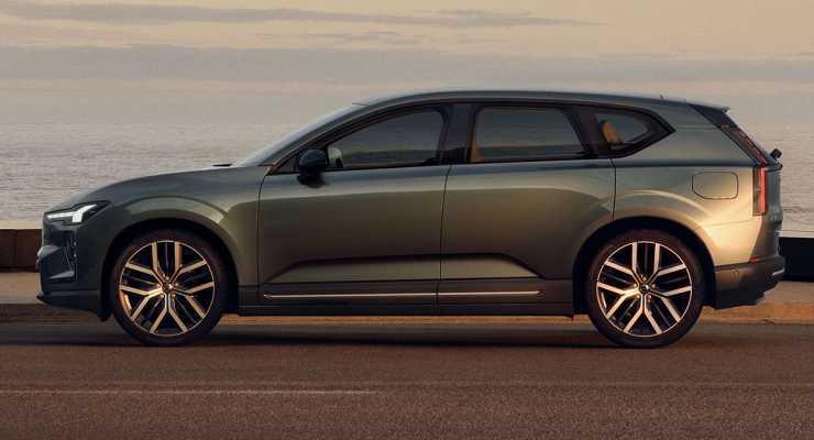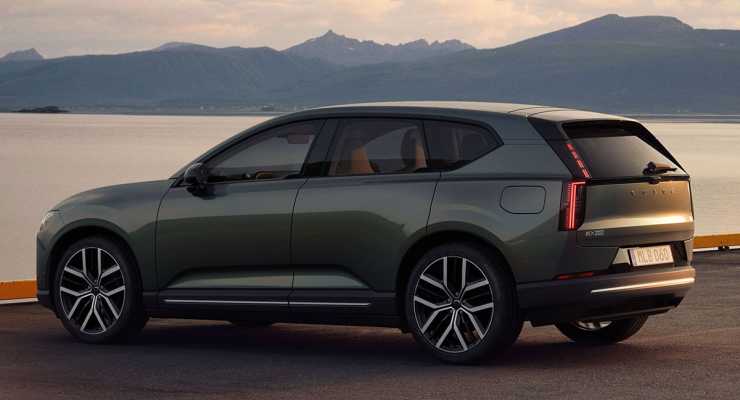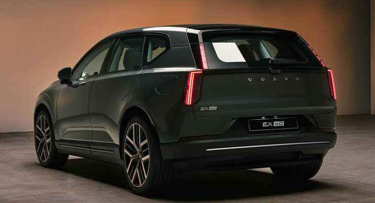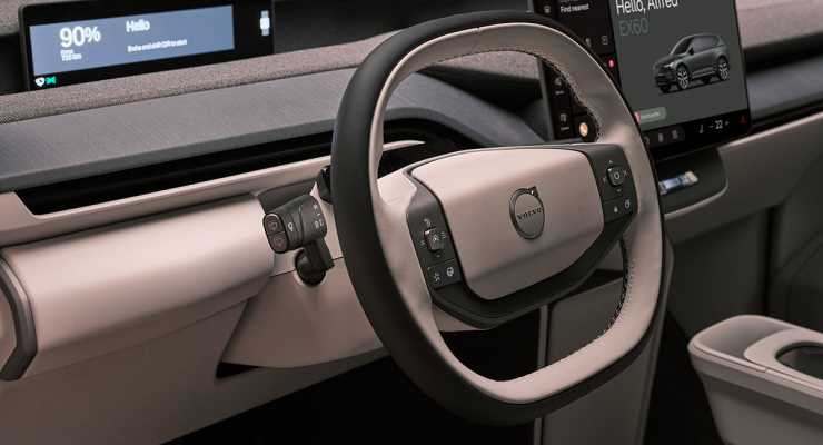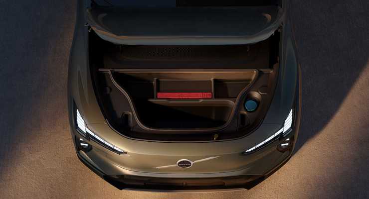 Designmässigt får bilen vissa drag av den större EX90, men i ett kompaktare format. Fronten känns igen men bakpartiet får ett nytt intryck jämfört med tidigare Volvomodeller. Interiören blir helt ny med liggande pekskärm i stället för stående i tidigare Volvomodeller.