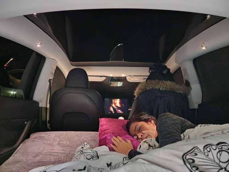 På nätet finns en hel ”community” kring att sova i bilen, och framför allt Teslabilar. Utbudet av Youtubefilmer i ämnet är stort och det finns företag som specialiserar sig på att tillverka campingprodukter anpassade för Teslabilar.