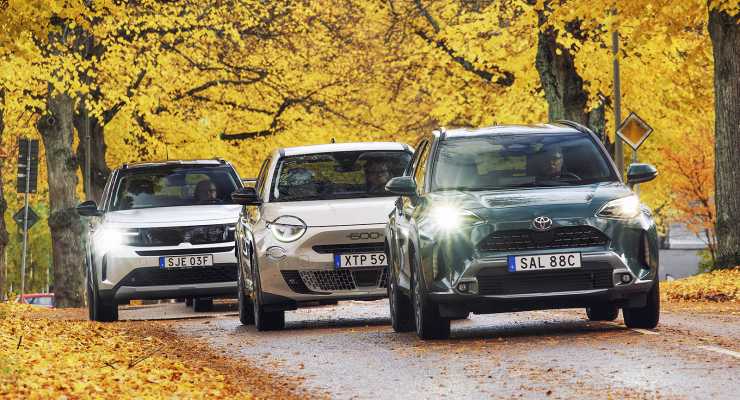 Olika stora, olika trendiga och olika grad av hybridisering men alla tre kostar runt 350 000 kronor. Vi testar rymliga Opel Frontera mot chicka Fiat 600 och nyligen uppdaterad storsäljaren Toyota Yaris Cross.