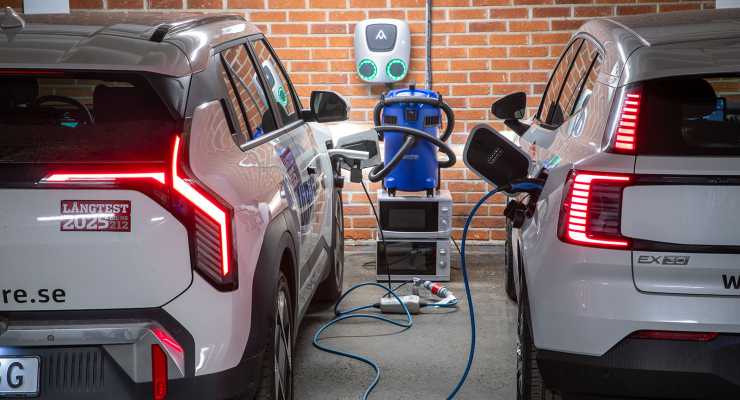 Den så kallade V2L-funktionen i Kia EV3 imponerar. Förutom att driva diverse prylar kan den i vissa fall till och med dela med sig av strömmen till andra elbilar.
