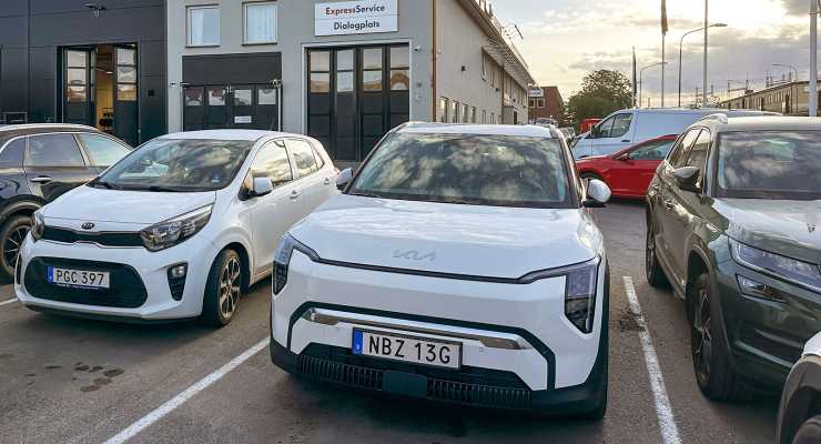 Elbilen Kia EV3 i väntan på service – och en räkning på 4 759 kronor.